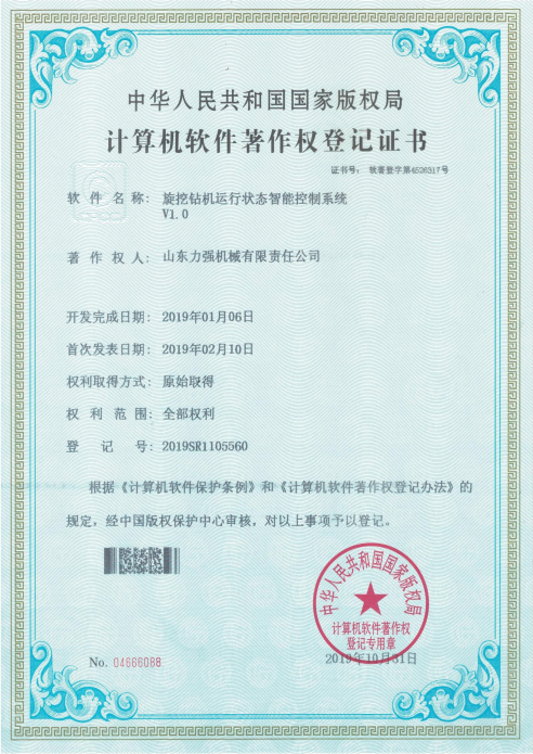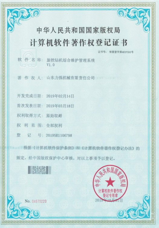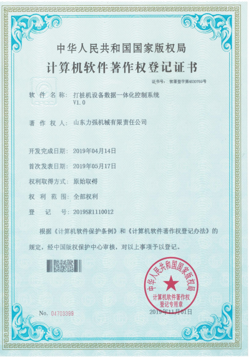 | 打桩机设备数据一体化控制系统V1.0 | 打桩机设备运行数据智能管理系统V1.0 | 打桩机设备运行状态可视化管理系统V1.0 | 旋挖钻机故障智能检测软件V1.0 | 旋挖钻机运行状态智能控制系统V1.0 | 旋挖钻机综合维护管理系统V1.0 |