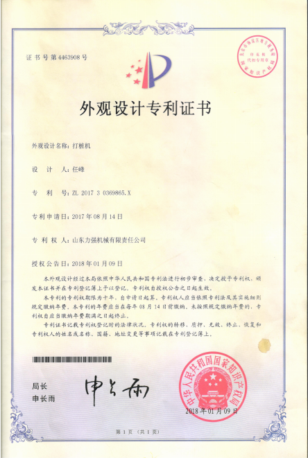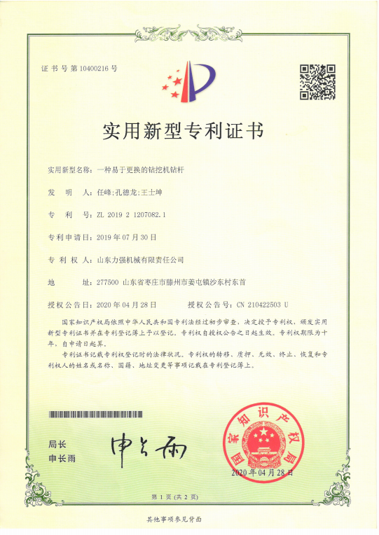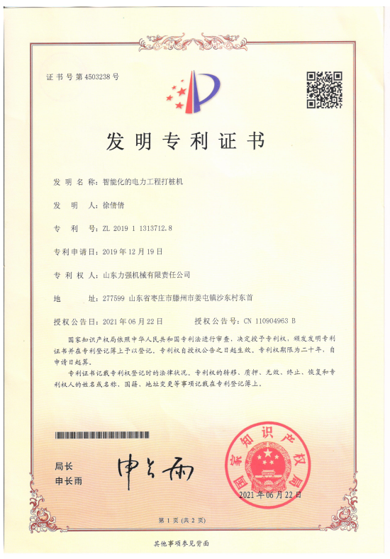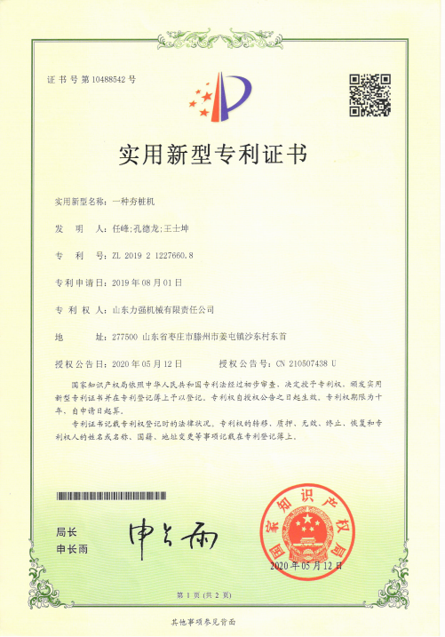 | 弹射打夯机授权发明专利 | 一种伸缩式机锁钻杆 | 一种通过改变运动频率从而改变孔距的智能钻孔机授权专利 | 智能化的电力工程打桩机 |